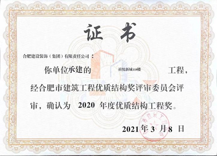 禧悦新城11#楼——2020年度合肥市建筑工程优质结构奖
