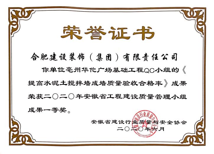 合肥市建筑业2018年度优秀项目经理——方德建