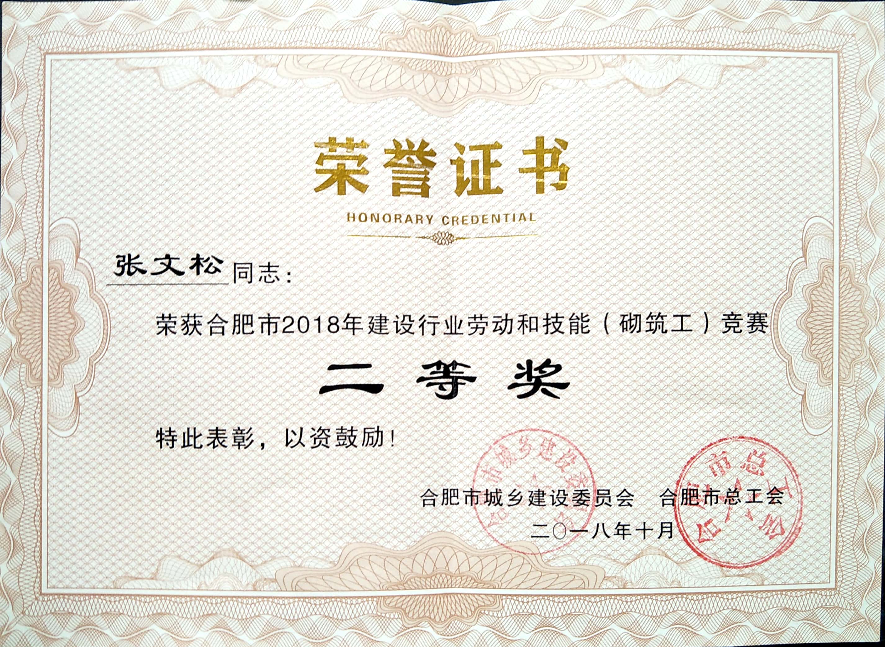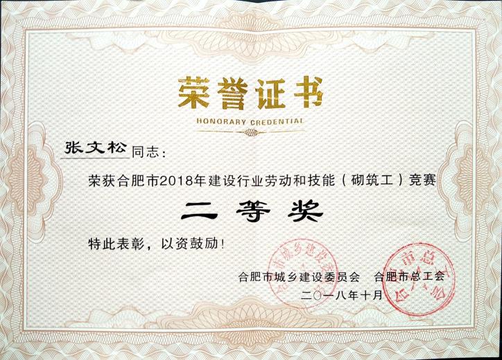 >2018年建设行业劳动与技能砌筑工--二等奖
