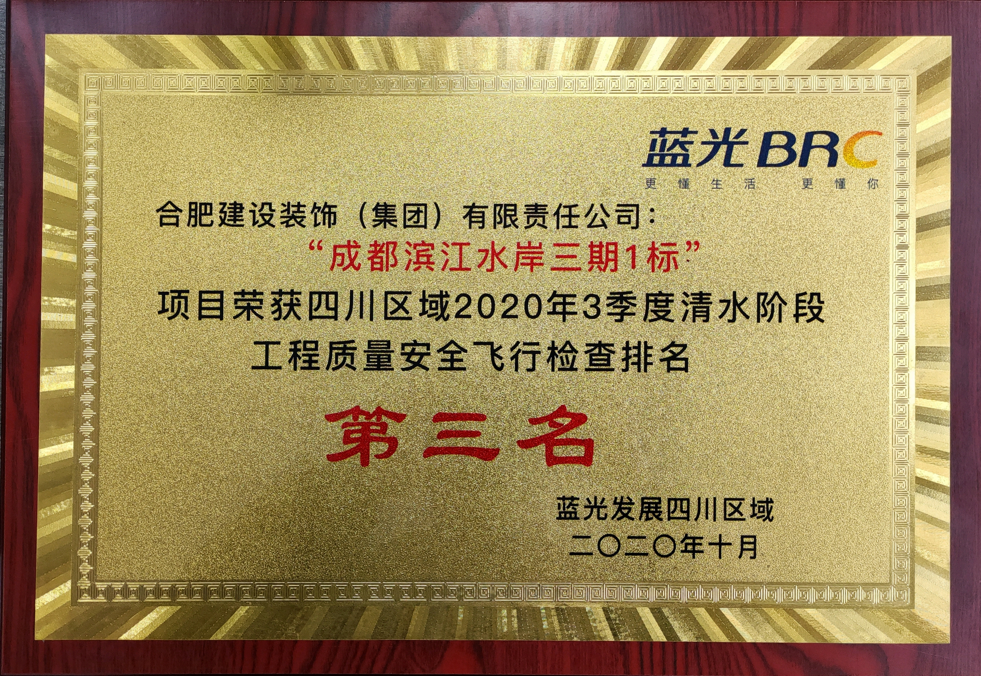 >滨江水岸获蓝光发展四川区域2020年3季度飞检第三名