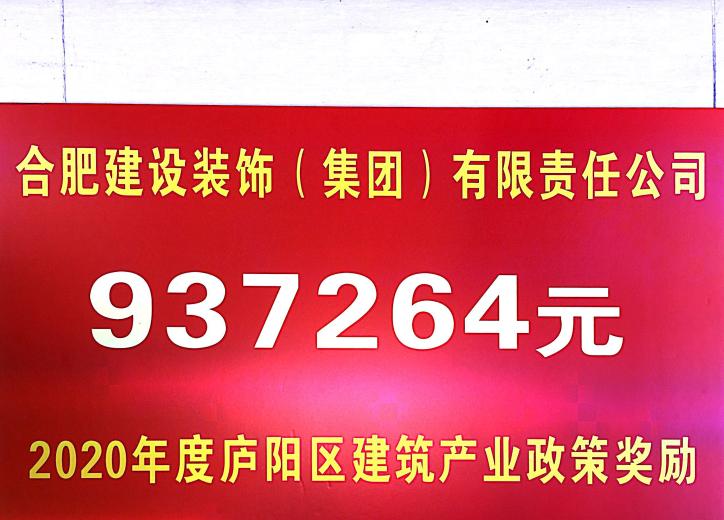 >2020年度庐阳区建筑产业政策奖励937264元