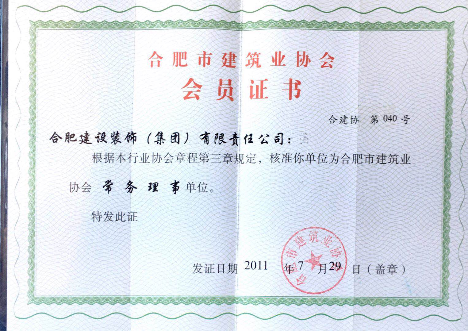 >合肥市建筑协会常务理事单位