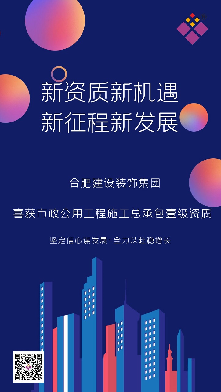 近日,经安徽省住房和城乡建设厅审核批准,集团顺利取得市政公用工程施工总承包壹级资质,这是继2008年3月取得建筑工程施工总承包国家壹级资质、2022年1月取得房屋建筑工程监理甲级资质后,获得的又一项重要资质,这将为集团进一步开拓市政公用工程市场,培育新的经济增长点,实现高质量发展奠定了坚实的基础。