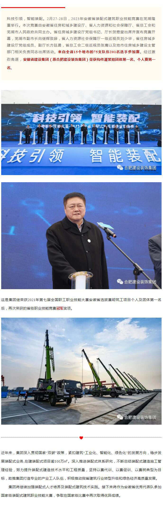 >喜讯 | 集团荣获安徽省装配式建筑职业技能竞赛个人及团体二项冠军