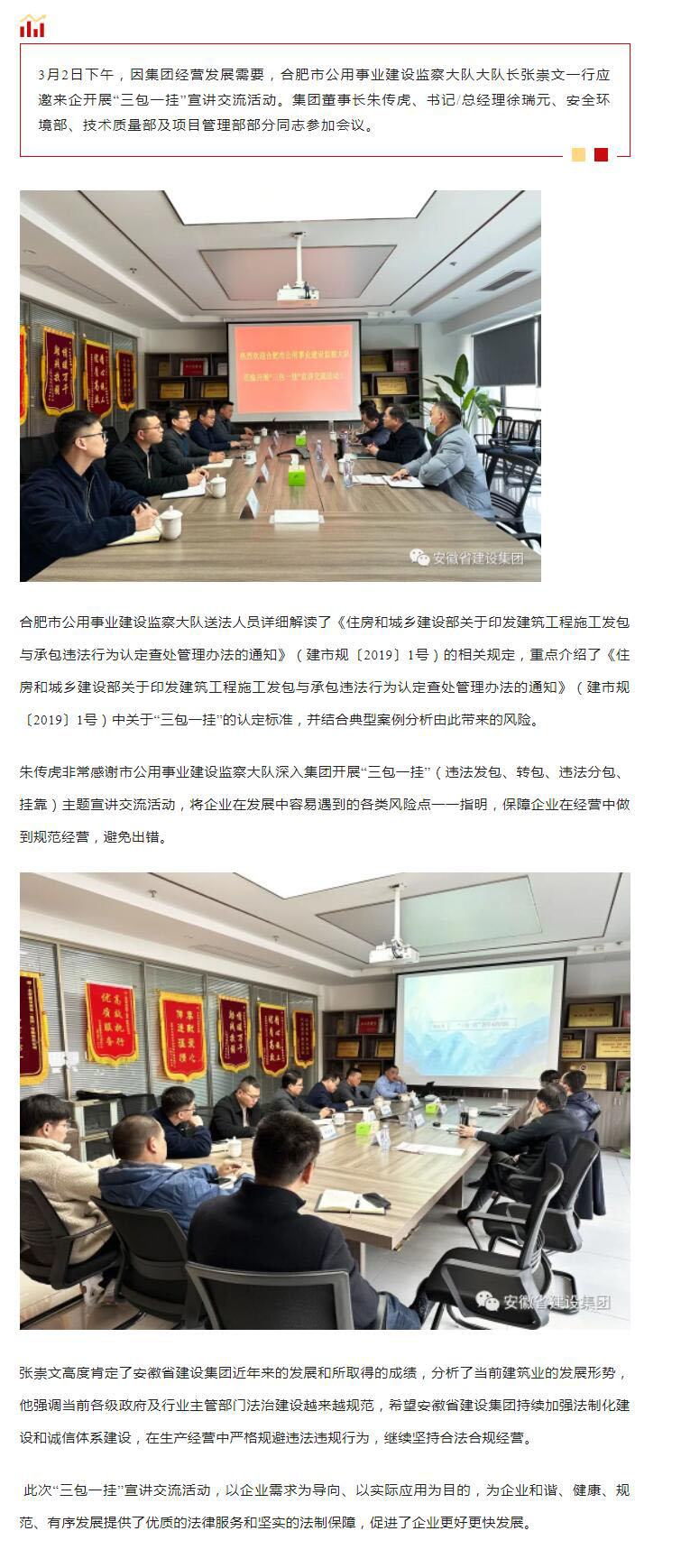 >合肥市公用事业建设监察大队到集团开展“三包一挂”宣讲交流活动