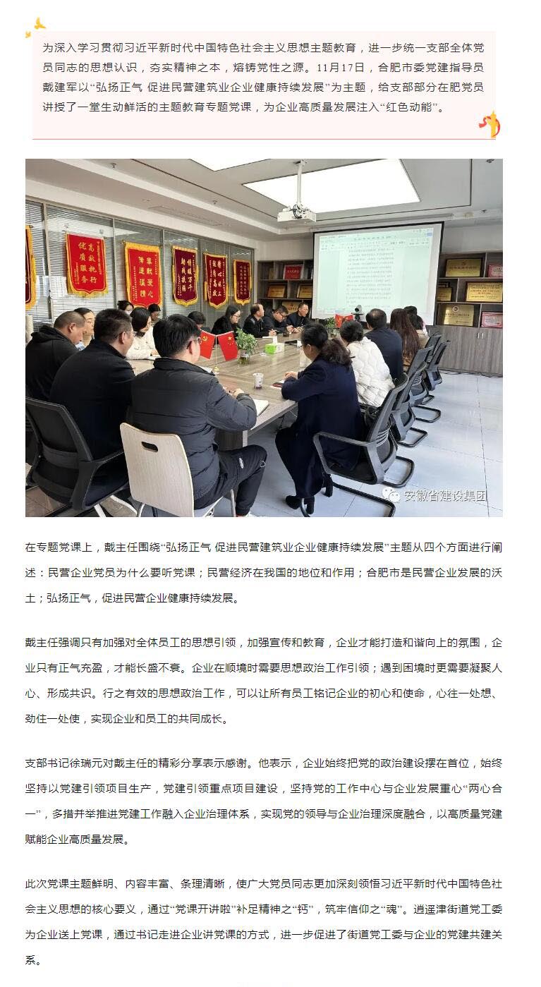 >党建活动 | 合肥市委党建指导员深入企业“党课开讲啦”